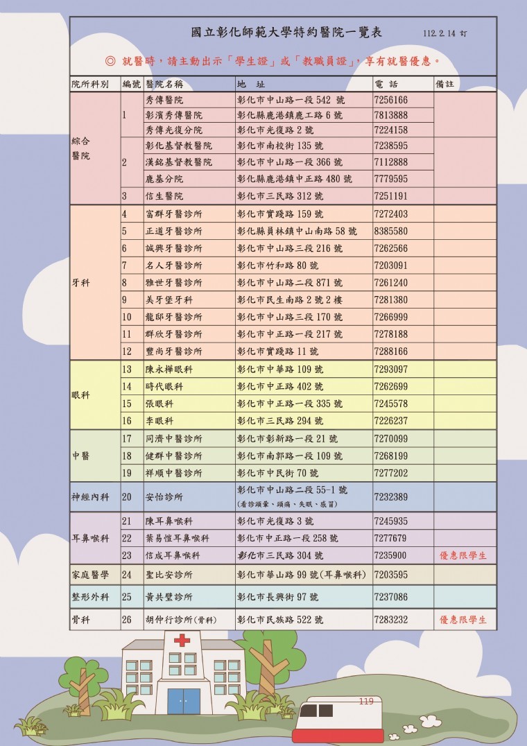參、本校特約醫院