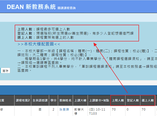 理學院所屬大一各班;下學期開課於教育學院、社科體院、工學院、管理學院所屬大一各班),是由學校自動匯入。
